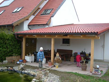 Eine komplette Freisitzüberdachung mit Pflasterarbeiten auch kein Problem für uns.