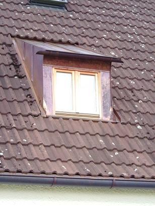 Diese Gaupe sowie das komplette Dach wurden von uns erneuert.Das Dach wurde neu eingeschallt und wieder eingedeckt,die Gaupe wurde komplett neu errichtet das Fenster eingebaut und neu verblecht.Alle anderen Blechanschlüsse wurden auch aus Kupfer und mir größter Sorgfallt hergestellt                                      Also alles aus einer Hand !!
